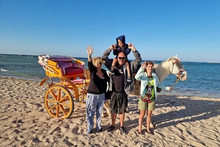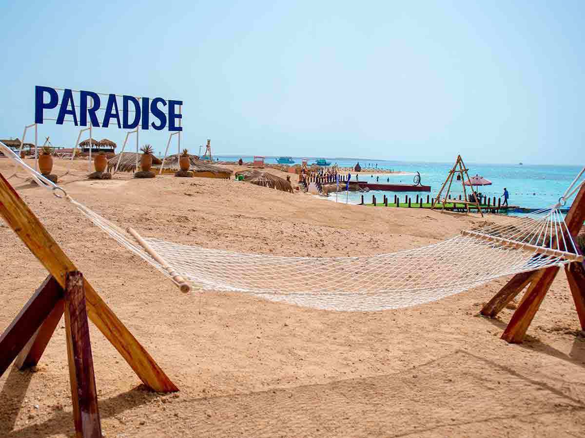 Enjoy 2 hours on Hula Hula Island in Hurghada with 2 snorkeling stops, lunch on the boat, drinks, and exciting water games. Red Sea adventure and relaxation!