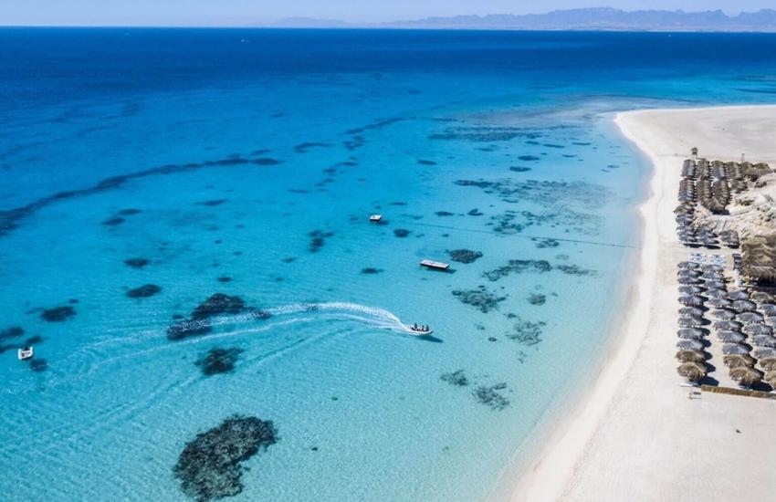 All-day stay on Mahmya Island Hurghada+ open buffet lunch on the island + optional snorkeling stop from the boat